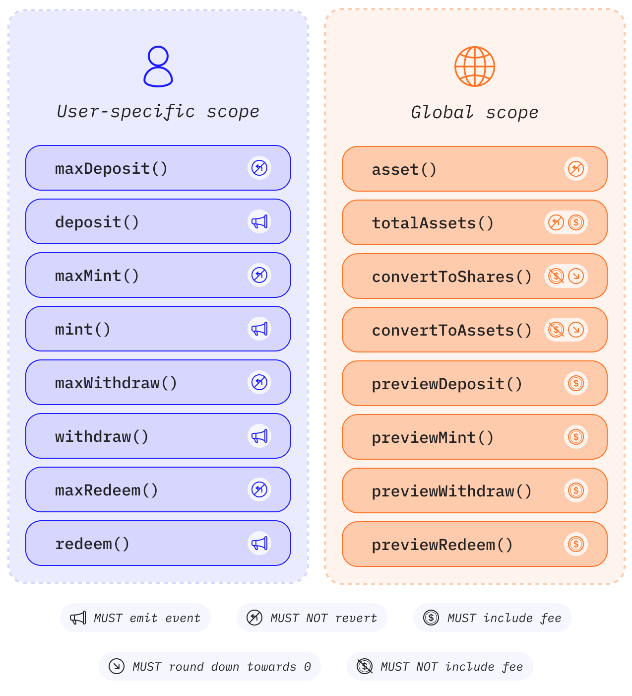 ERC-4626 is a standard to optimize and unify the technical parameters of yield-bearing vaults. It provides a standard API for tokenized yield-bearing vaults that represent shares of a single underlying ERC-20 token. ERC-4626 also outlines an optional extension for tokenized vaults utilizing ERC-20, offering basic functionality for depositing, withdrawing tokens and reading balances.
